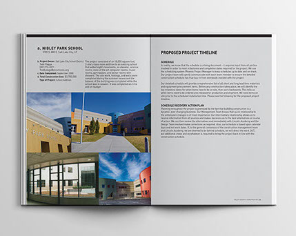 These booklets are created as a template that is customized for our clients when they bid for new client projects throughout the year. They closely follow the Request for Qualifications (RFQ) that are required, all while presenting the information in a clean, simple to follow layout.